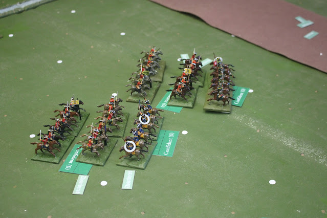 Tim goes all in with his cavalry, charging both Chris' horse, and Richard's foot. Ian sends a fresh unit of horse into Chris' horse who were rallying.