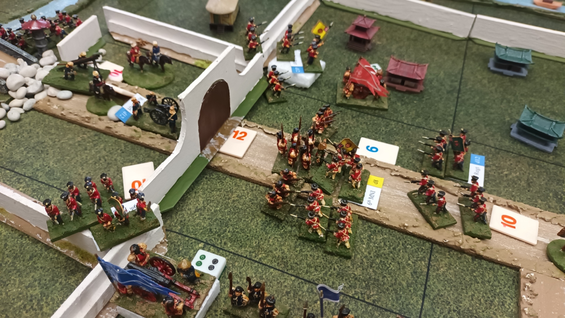 Phil got more and more frustrated with his inability to get through the secondary gate*. Chris was doing his best, and was storming down the main city street to open it for him. The Chinese unit in front of them put up a stiff fight. They had already driven off the 55th, and were now engaged in a hot fight with the 6th Madras Native Infantry.
